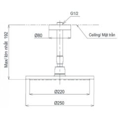Bản vẽ bát sen tắm TBW 07002A1 TOTO gắn trần 250 mm