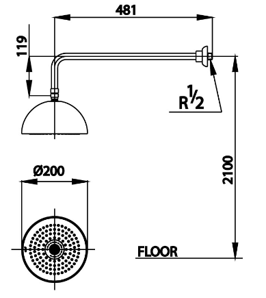 Bản vẽ kích thước bát sen âm tường Cotto Z002 GR