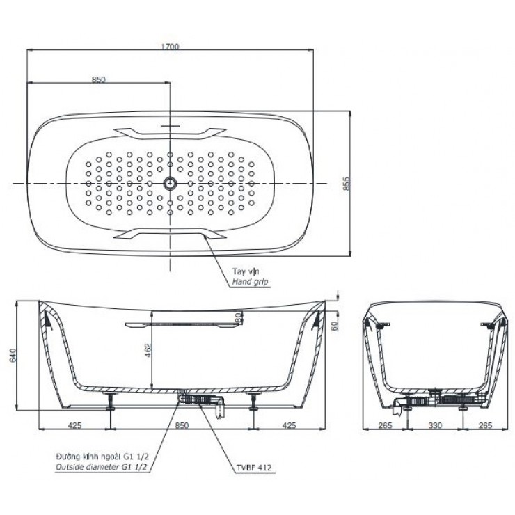 - Bao gồm bộ xả nhấn TVBF412