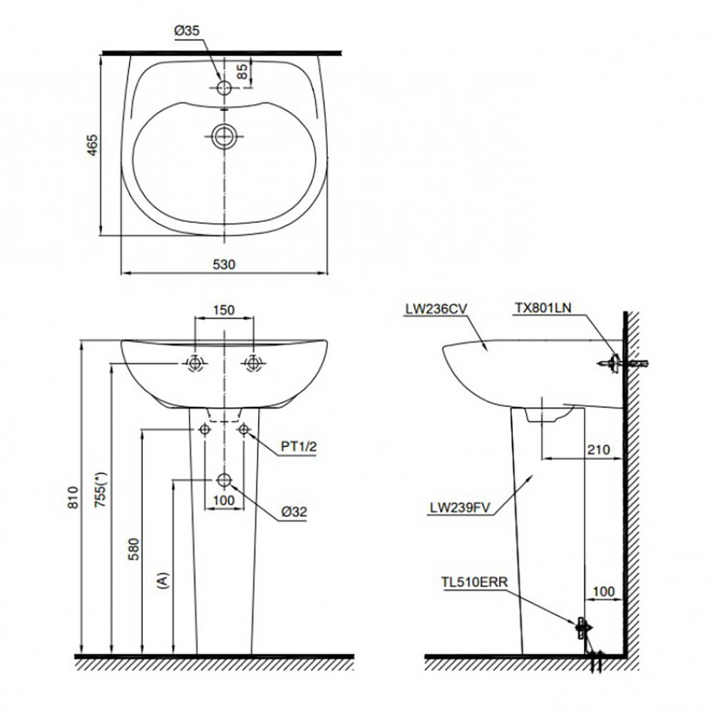 Bản vẽ bồn rửa mặt TOTO LPT236CS#W