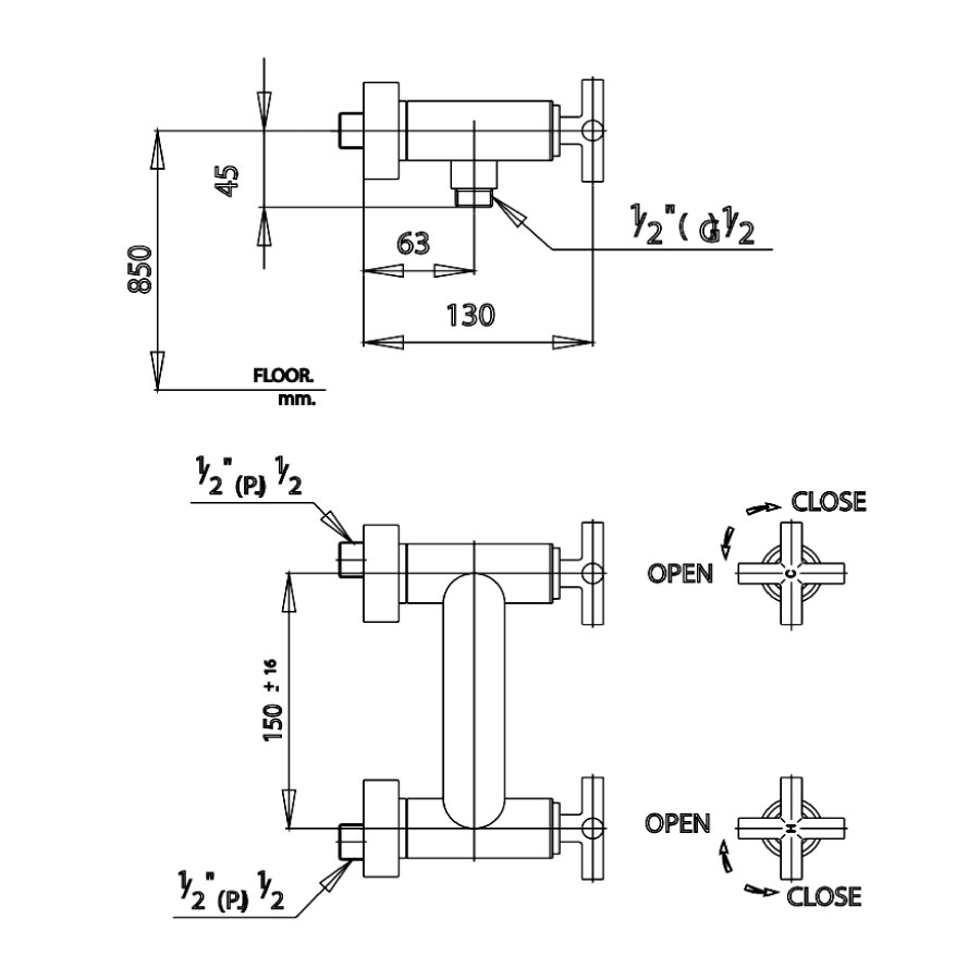 - Chất liệu: Đồng thau mạ Nickel-Chrome