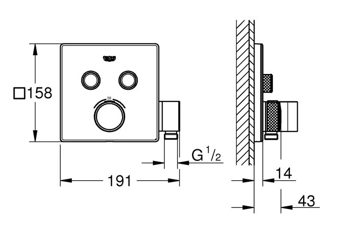 Bản vẽ kỹ thuật bộ âm ổn nhiệt GROHE Grohtherm SmartControl 29125000 gắn tường