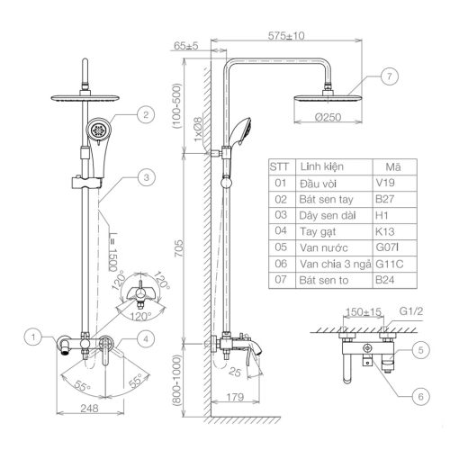 Thông số kĩ thuật Sen cây VIGLACERA VG581 nóng lạnh