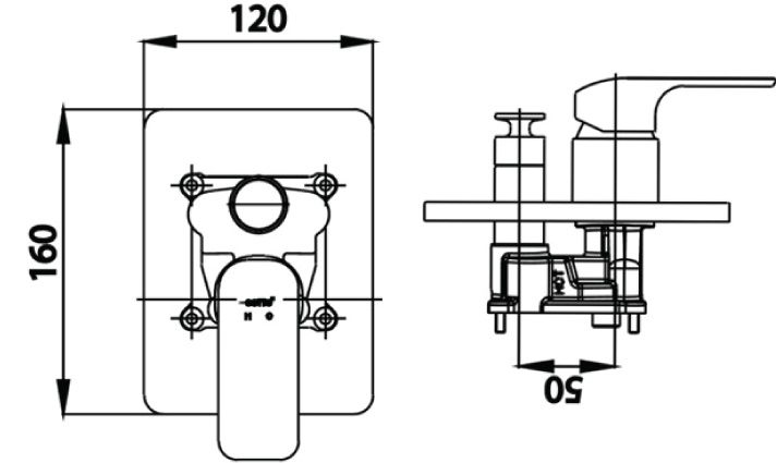 Bản vẽ kích thước van âm tường CT 2145A WH Cotto nóng lạnh