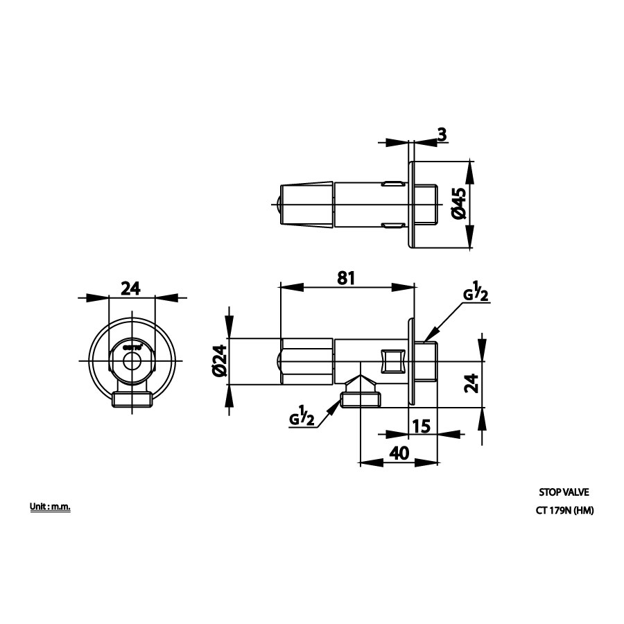 Bản vẽ kích thước van khóa Cotto CT179N HM