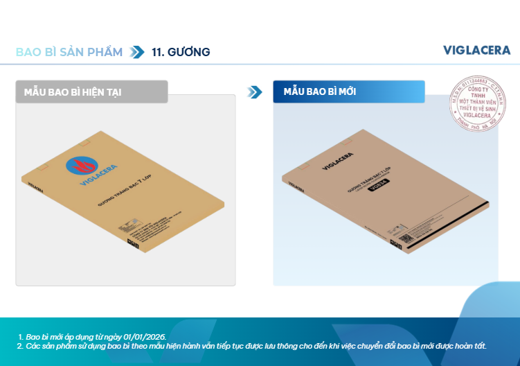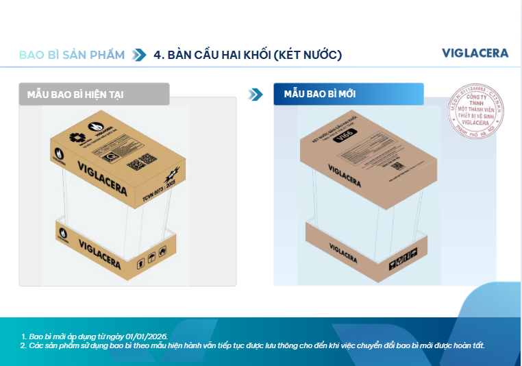– Tăng cường khả năng bảo mật, chống hàng giả: Thực trạng hàng nhái các thương hiệu lớn như Viglacera đang ngày càng tinh vi. Bao bì mới tích hợp các công nghệ in ấn hiện đại, mã QR quản lý thông minh giúp khách hàng dễ dàng truy xuất nguồn gốc, đảm bảo mua đúng sản phẩm chính hãng.