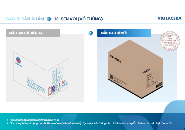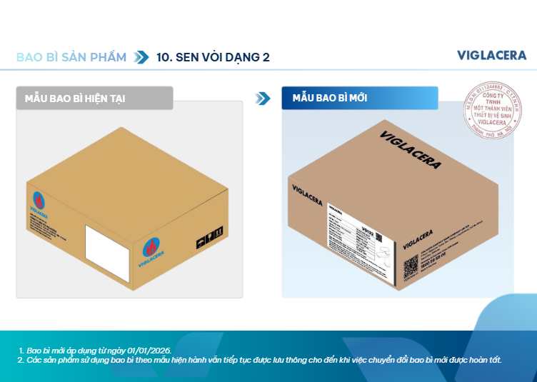 calendar_month 22 Tháng 1, 2026Trong nỗ lực không ngừng cải tiến để mang lại trải nghiệm tốt nhất cho khách hàng và bảo vệ quyền lợi người tiêu dùng, Viglacera – thương hiệu thiết bị vệ sinh hàng đầu Việt Nam – đã chính thức công bố thay đổi nhận diện bao bì mới. Việc thay đổi này không chỉ đơn thuần là “khoác áo mới” cho sản phẩm mà còn là chiến lược quan trọng để chống hàng giả, hàng nhái và khẳng định vị thế của doanh nghiệp trong kỷ nguyên số.