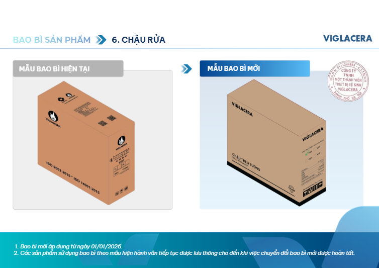 2. Những thay đổi nổi bật trên bao bì mới của sản phẩm thiết bị vệ sinh Viglacera